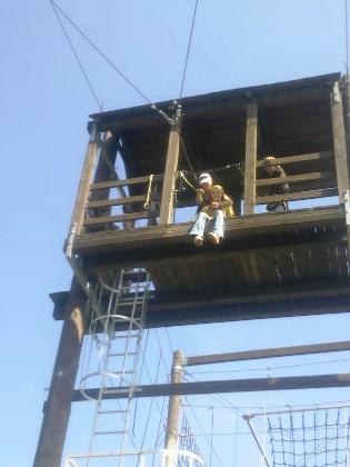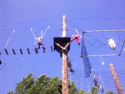V půl deváté už jsme byli v Lanovém centru a paní instruktorka hned zavelela na trenažér. Děti si zkusili, jaké to bude na lanech ve výšce půl metrů nad zemí, ale pak už se bez dalšího zdržování nasoukali všichni do sedáků s jistícími lany a hurá do výšky… Překonávaly překážky i sami sebe, vzrušení i strach byly na místě, ale zvládli to všichni na jedničku, včetně závěrečného skoku do prázdna. A podle spokojených výrazů posuďte sami, zda byli akcí nadšení … J