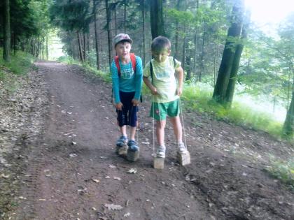Po návratu do železného jsme od 14 hodin chystali také akci pro ty nejmenší… Děti ve věku 3-10 let vyrazili úderem třetí hodiny na Lesní putování Železným, a to bez rodičů, pouze se“zvířátky“ a s lektory CR! Statečně a s nasazením plnili úkoly a sbírali razítka, za která dostali na konci stezky za oděnu dárkové balíčky.