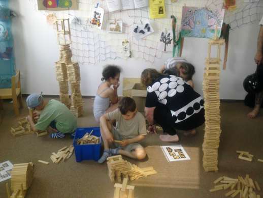 Přišlo se podívat několik rodin ze Železného i z Tišnova, děti i rodiče si pohráli s velkou stabilní dřevěnou autodráhou a postavili rozmanité stavby z mnoha kostiček stavebnice KAPLA viz foto. Škoda jen, že návštěvnost nebyla tak veliká, jak jsme čekali, počasí nám nepřálo – bylo moc hezky J