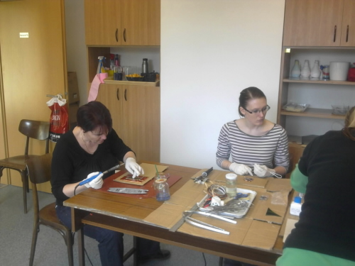 V sobotu 26.2.2011 jsme zajistili pro slečny a dámy umělecký kurz Tiffany (výroba šperků ze skla a kamenů), vedený zkušenou lektorkou Mgr. Monikou Chlupovou z Tišnova. Každá z dam si mohla vyrobit vitráž, ozdobu či šperk dle své fantazie. A všechny vyráběly a vyráběly a dlouho po skončení kurzu se jim ještě nechtělo domů, jak je výroba krásných věcí chytila. A když odcházely, ptaly se kdy bude další kurz. No a zatímco maminky vyráběly, tak děti v herně také nezahálely a domů odešly s krásnými čerty a motýlky z kůže s kapsami plnými dobrot. Na výsledek jejich práce se můžete podívat zde: